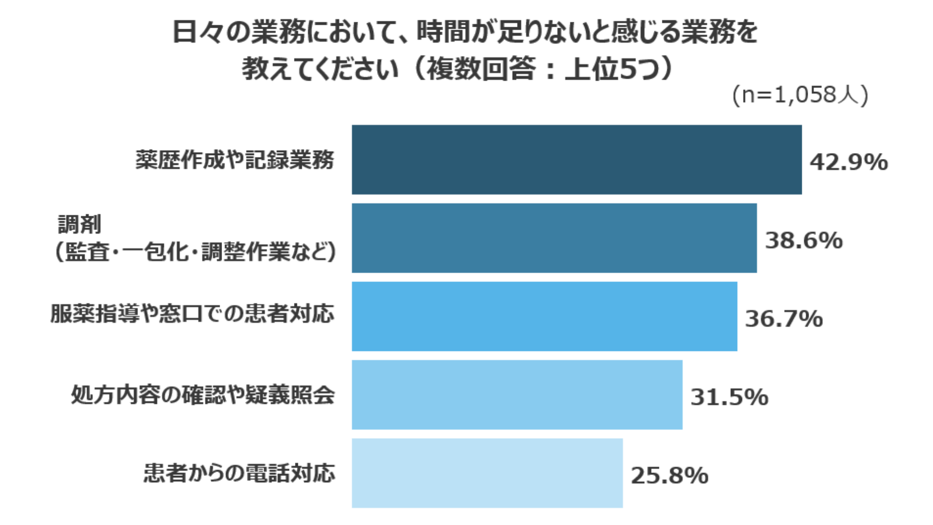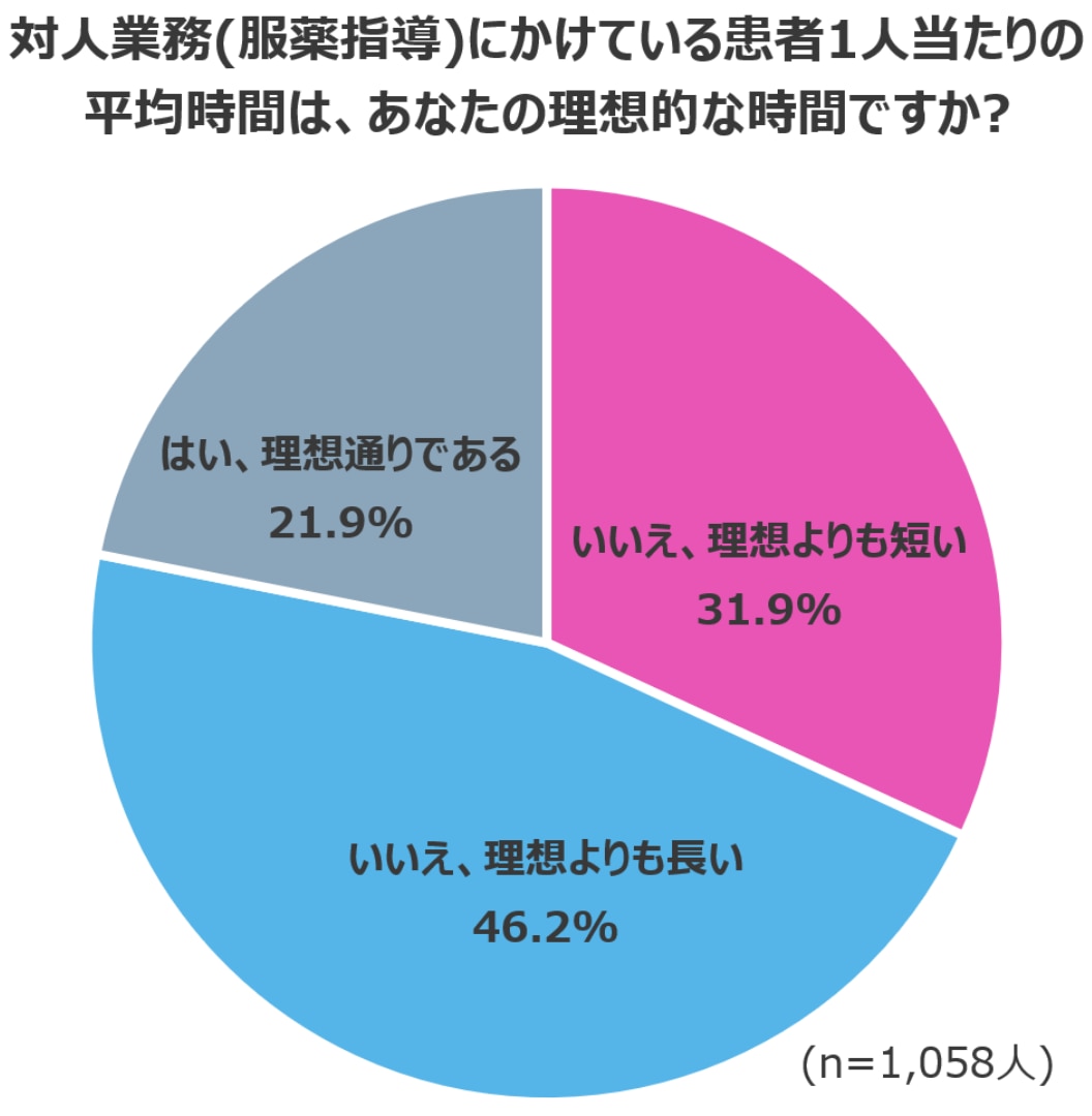 調査では、患者一人あたりの服薬指導の時間が「理想より短い」と感じている薬剤師が31.9%に上りました。