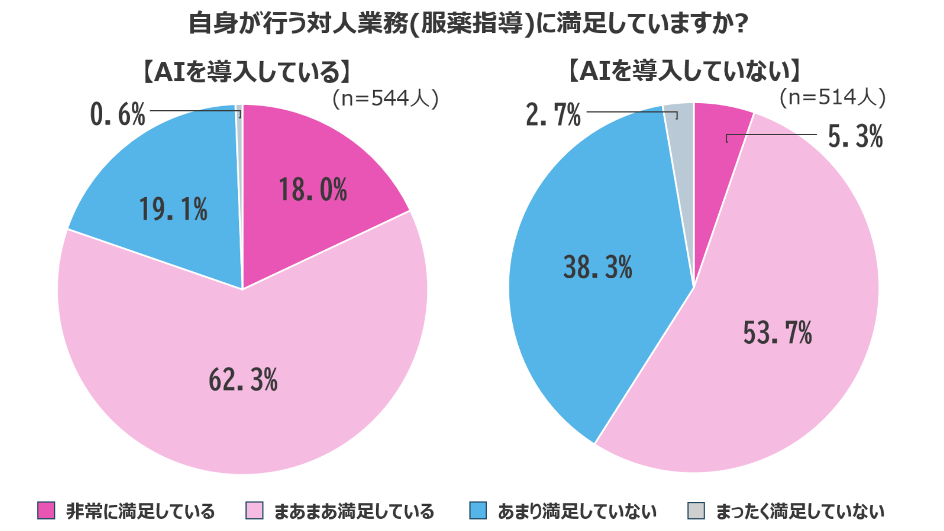 調査の中で最も注目すべきデータが、AI導入の有無による服薬指導への満足度の差です。