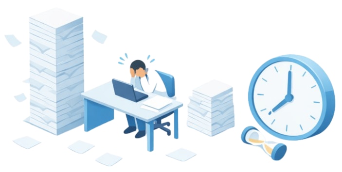 在宅訪問に伴う書類業務は、制度上の義務として避けることができません。そして患者数が増えるほど、その業務量も比例して増えていきます。