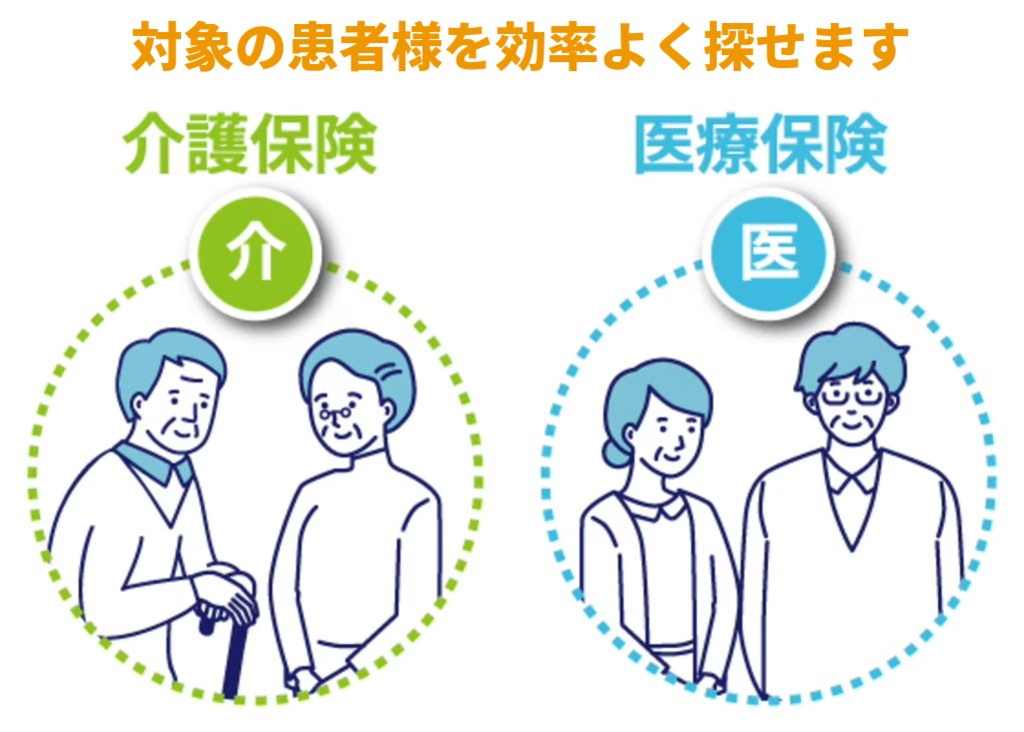 ①医療機関や介護施設等への報告書の提出が必要なタイミングで、提出先の医療機関や介護施設等に絞って、報告書の検索を行います。